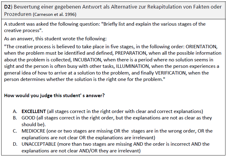 Wenn man die Prüfungsfrage als konkretes Beispiel formuliert, müssen die Studierenden das Konzept „extrinsische Motivation“ verstanden haben um sie beantworten zu können.