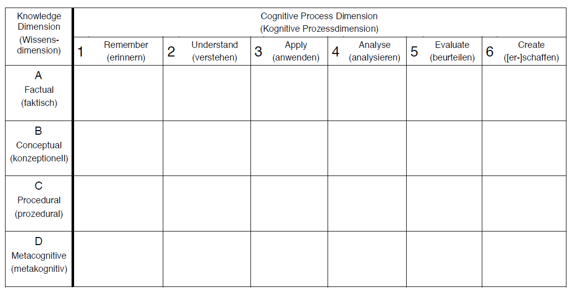 kognitive Prozessdimension (= Lernziel-Stufen) |